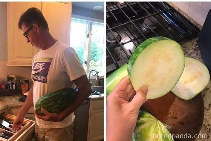 "Папа так гордился выращенным им арбузом... Бедняга! Он был очень расстроен, узнав, что это всего лишь гигантский оругец!"