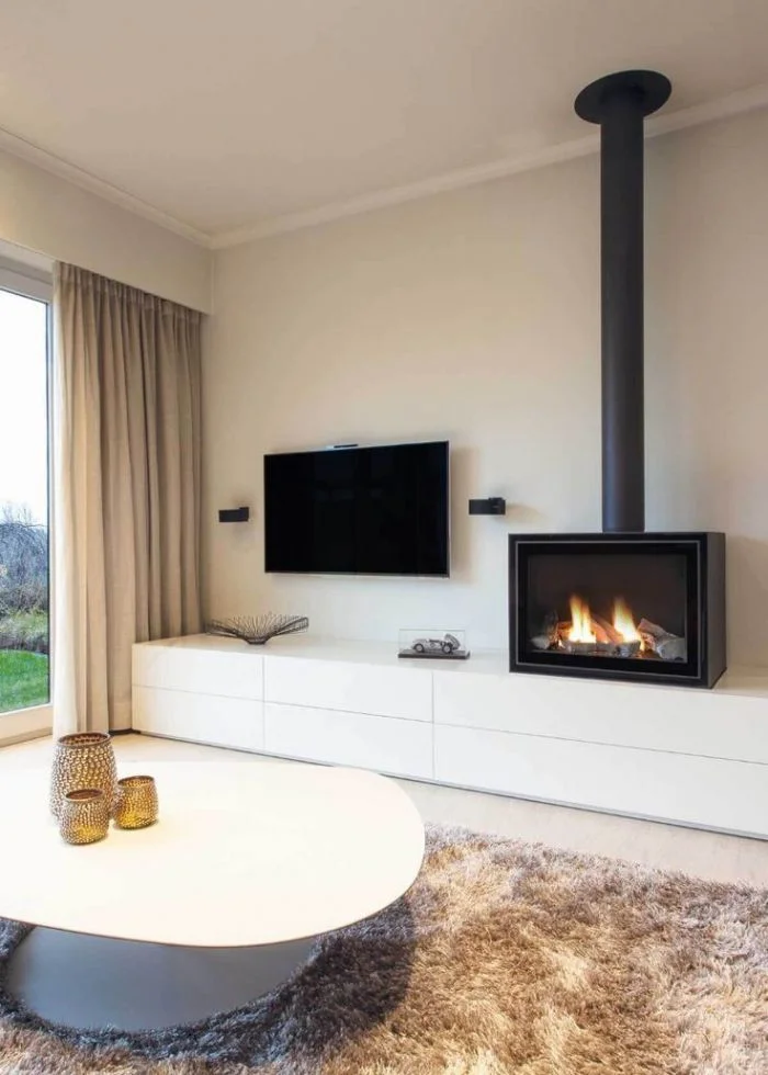 5. В интерьер вписать можно по-разному: разместите камин непосредственно под телевизором, создав стильную и функциональную зону отдыха. Используйте минималистичные линии и светлые тона для гармонии с интерьером