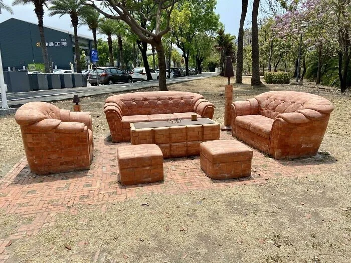 Трудно поверить, но этот набор диванов сделан из кирпича!