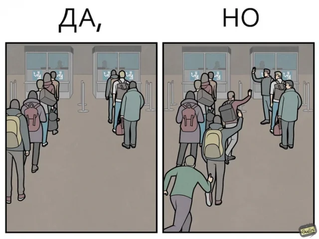 Различные точки зрения на одно явление или ситуацию могут оказаться для нас полезными. Даже если это всего лишь улыбка — это уже достижение. Именно об этих разных взглядах на обыденное и рассказывает Антон Гудим в серии комиксов «Да, Но».