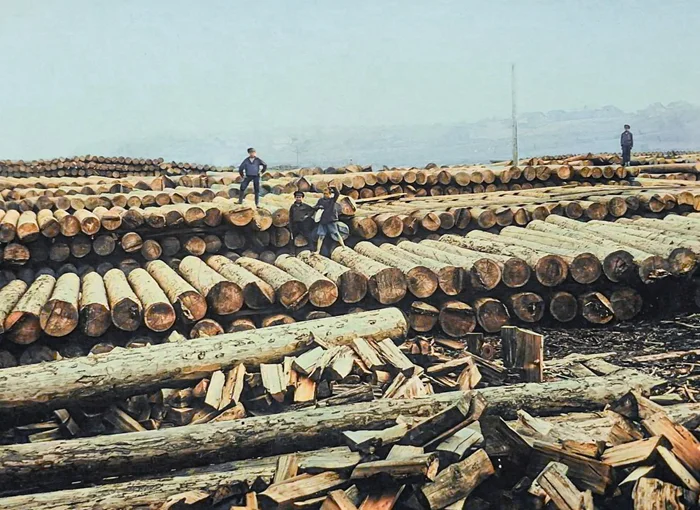 Склад древесины у лесопилки, 1910 год.