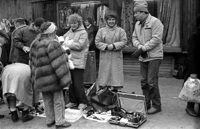 25. Уличная торговля в Еманжелинске, Челябинская обл, 1990 год