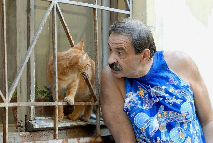 20. Михаил Державин с любимой кошкой Соней , 1996 год.