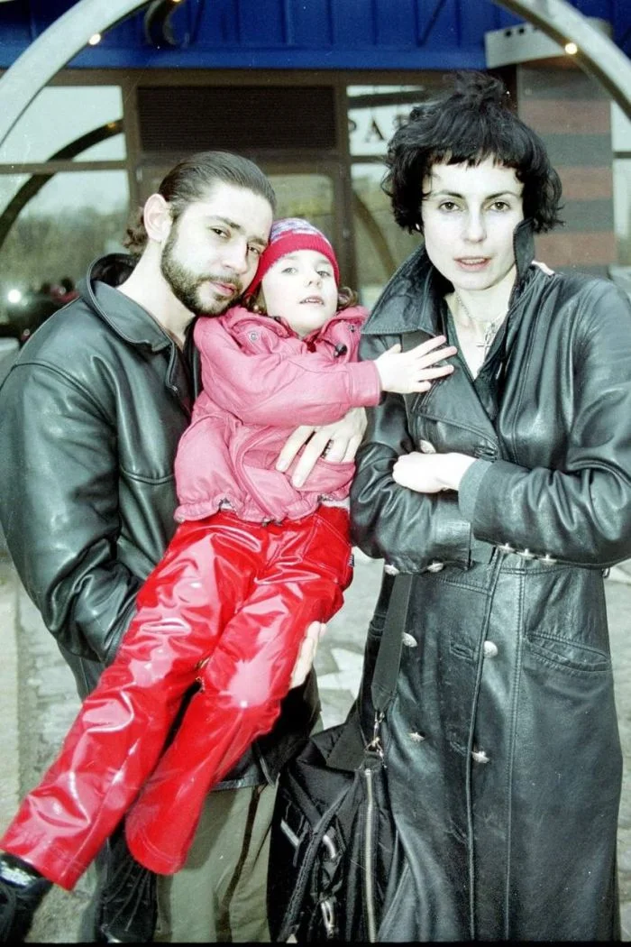 Валерий Николаев и Ирина Апексимова с дочкой Дарьей на прогулке. Россия, 1990-е годы.