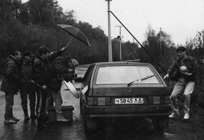 На съёмках фильма «На Дерибасовской хорошая погода, или На Брайтон-Бич опять идут дожди». Москва, 1991 год.