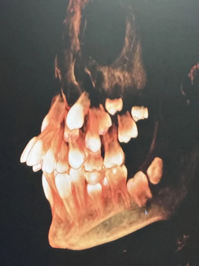 10. Рентгеновский снимок зубов 13-летнего подростка (у него всё еще есть молочные зубы)