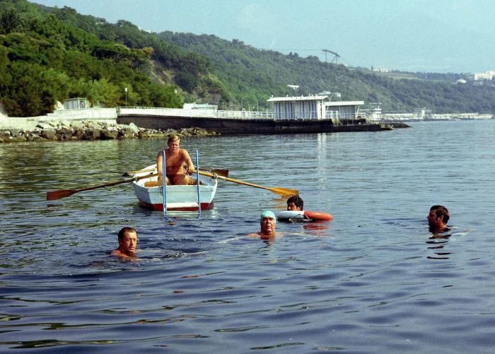 Вот и сегодня - не исключение, давайте посмотрим на водные процедуры Леонида Ильича неподалёку от Ливадии.