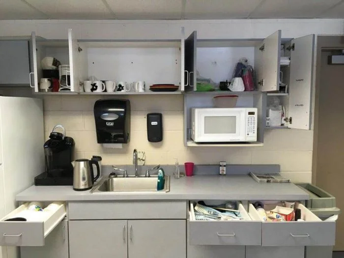 Коллега снимает обувь, добавляя запах носков к нашему ланчу