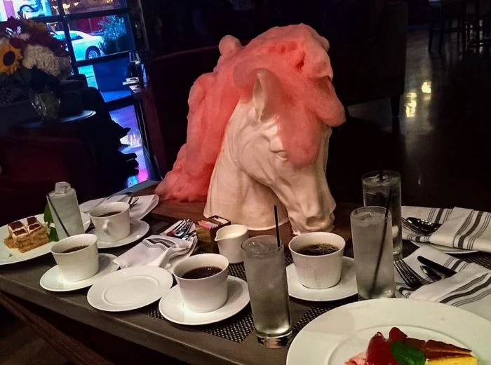 Даже конь выглядит унылым из-за такой подачи десерта.