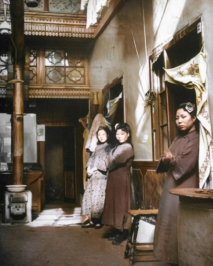 Дамы легкого поведения в ожидании клиентов. Китай, 1946 год.