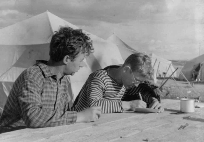 12. Л. Блохинцев и С. Федотов – руководители студентов московского университета, на строительстве Череповецкой ГЭС. Август 1962 года. Автор: Г. Ефимовский.
