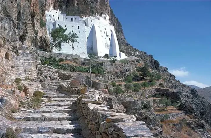 Строение плотно примыкает к скале в Греции. Монастырь был построен в 1088 году по приказу императора Алексея I Комнина. Он находится на высоте трехсот метров над уровнем моря, и его постройки являются частью скалы.