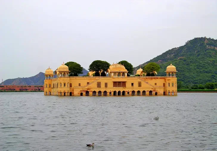 Дворец Джал-Махал располагается на озере Ман Сагар в Джайпуре. Он был построен на суше, однако в самом конце XVI века в местность пришла засуха, и было решено построить дамбу для заполнения ниши водой. Дворец постепенно затоплялся. Архитектурный комплекс пятиэтажный, но четыре его этажа в настоящее время находятся под водой. К нему нет дорог, как и нет возможности попасть внутрь: для туристов посещение закрыто.