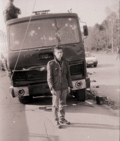 Российский десантник показывает свою крепкую спину. Республика Босния и Герцеговина, 11 марта 1994 года.