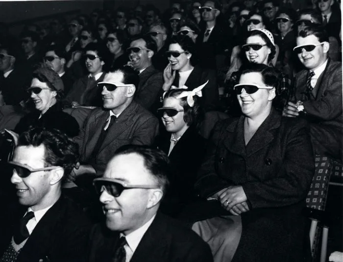6. Зрители в специальных очках смотрят 3D-стереоскопический фильм Лондон, 1951 год