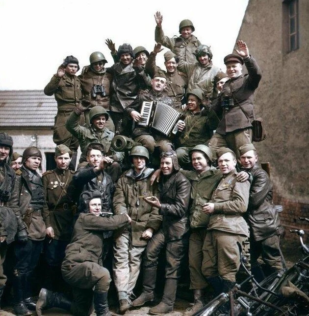 15. Советские солдаты и солдаты союзников, в честь победы над Германией, 1945 год