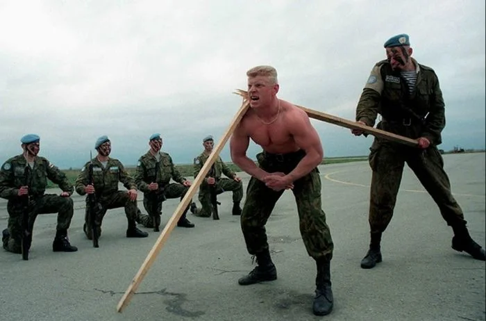 10. Российский десантник показывает свою крепкую спину. Босния и Герцеговина, 11 марта 1994 года