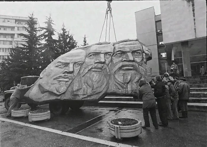 29. Демонтаж барельефа на бывшем здании Горкома КПСС. Сочи, 1992 год