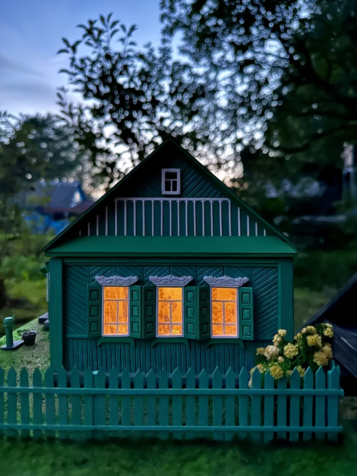 И пусть вас не смущает отличие в оттенках дома на фотографиях. Я снимала летом при ярком солнце, а на фото у нас пасмурная зима. Поставь макет в полутень, и цвета будут практически идентичными. Пруфы)