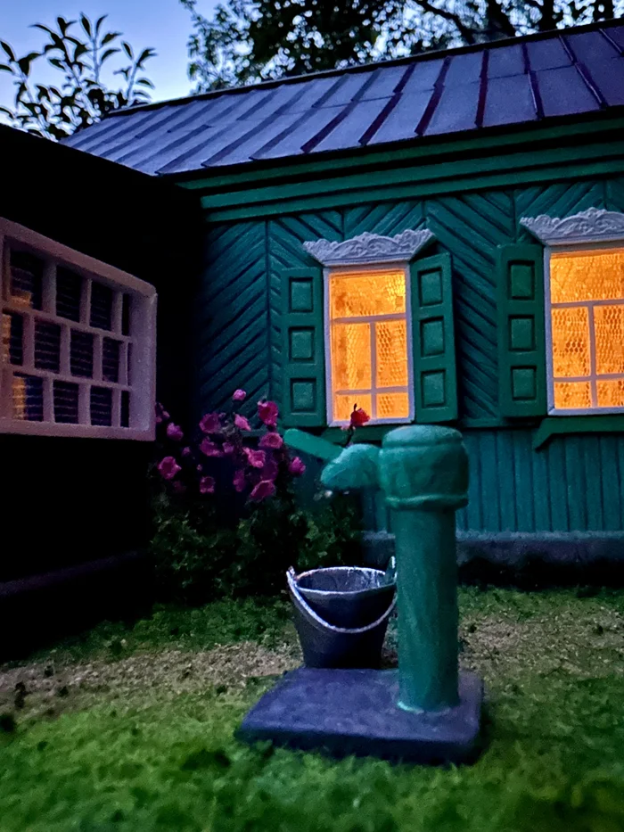Дом классный! И ставни есть, и наличники, узор елочкой на стенах, а как вам колонка у самого дома? Роскошество)))