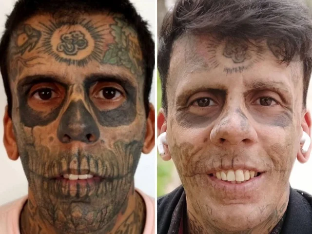 Несколько месяцев назад мужчина начал сводить татуировки на лице. 10 лет назад Леандро развёлся с женой и встал на тёмный путь с наркотиками и прочими несчастьями. Но принятие своих проблем, обращение за помощью к специалистам и религия помогли ему вылезти из ямы.