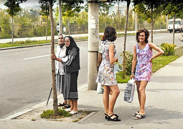 Удивляет контраст, который поймал фотограф: 2 девушки и рядом 2 бабушки, ничто не вечно.