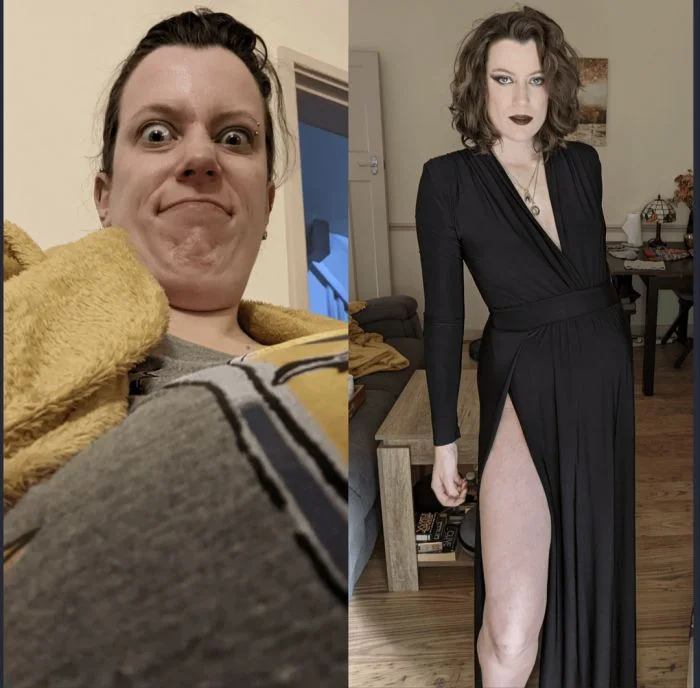 12. Я беременна. Слева - мой обычный вид, а справа - пытаюсь выглядеть красиво хотя бы недолго