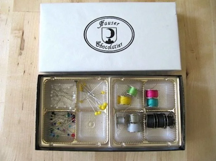 6. Коробка из-под печенья для швейных принадлежностей