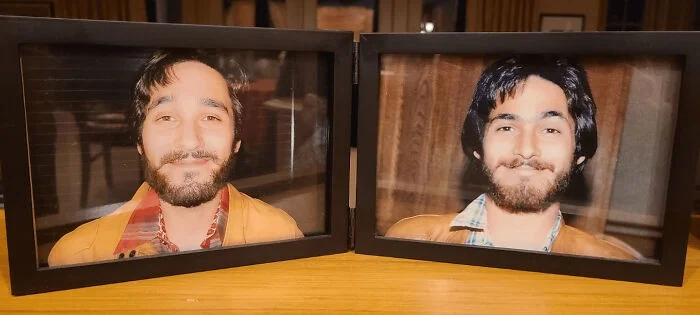 4. «Мне всегда говорили, что я похож на своего отца. Поэтому, когда я нашел его фотографию в 28-летнем возрасте, то не мог не повторить ее, когда мне исполнилось столько же»