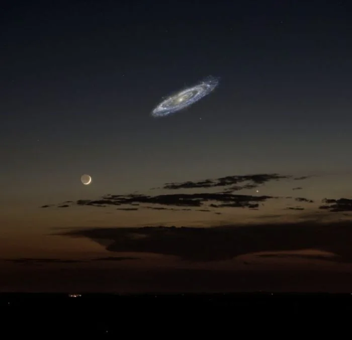 8. Как бы выглядела Андромеда с Земли, если бы она была немного ярче. Она движется к нам со скоростью примерно 300 км/с
