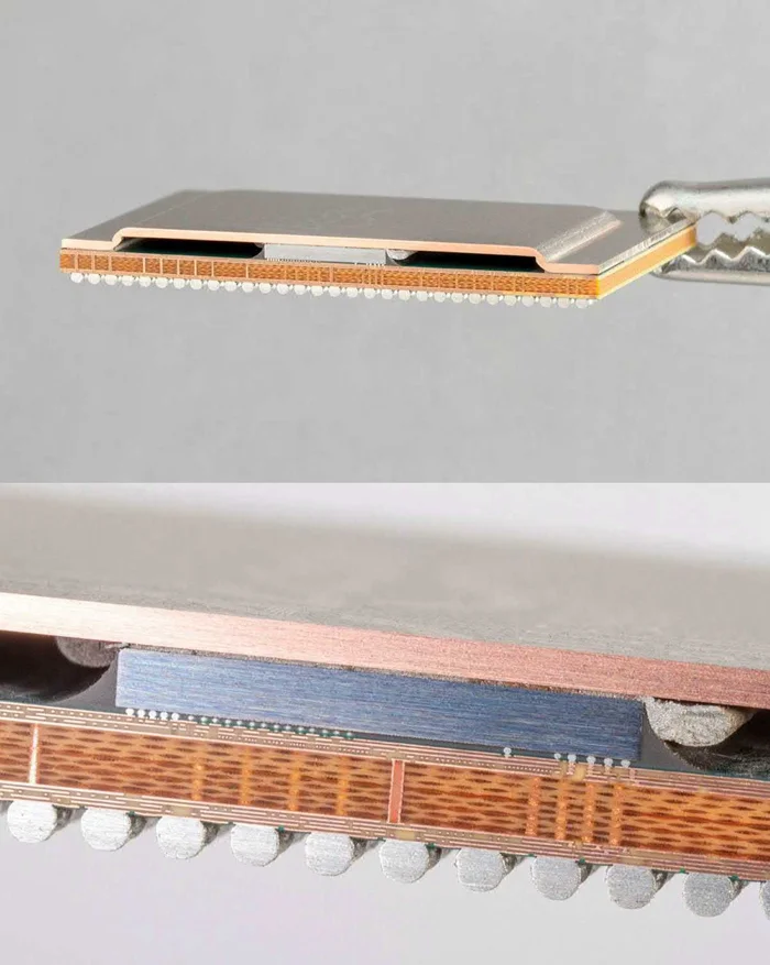 Чип на плате с шариками припоя (ещё не установленный на материнскую плату)