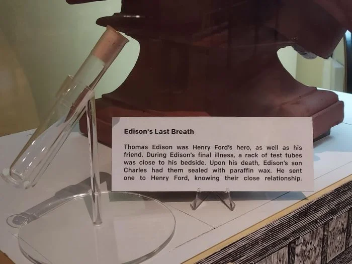 Томас Эдисон был героем для Тома Форда, а также его другом. Рядом с кроватью тяжело больного Эдисона стояли пробирки, а после его смерти сын Чарльз запечатал их парафином. Он отправил одну пробирку Форду, зная их крепкую дружбу с отцом.