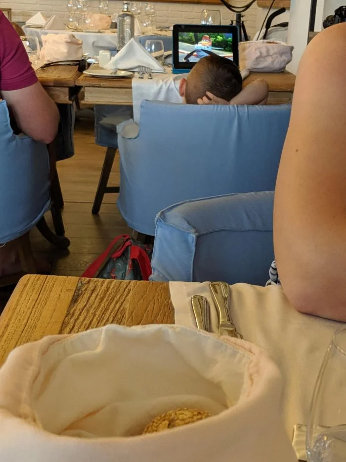 9. Это ребёнок смотрит кино в ресторане, без наушников, и на полную громкость