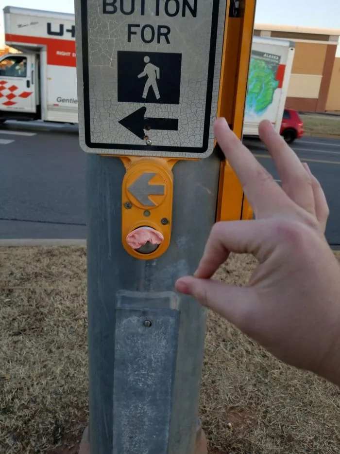 17. Какой-то "умник" прилепил жевательную резинку на кнопку для пешеходов