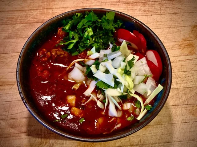 Традиционный мексиканский суп, который готовят из мяса и кукурузы. Отличается густотой и сытностью.