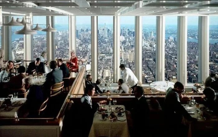 30. Вид на город из ресторана Windows On The World («Окна мира»), 1976 г. Он располагался на вершине Северной башни Всемирного торгового центра в Нью-Йорке