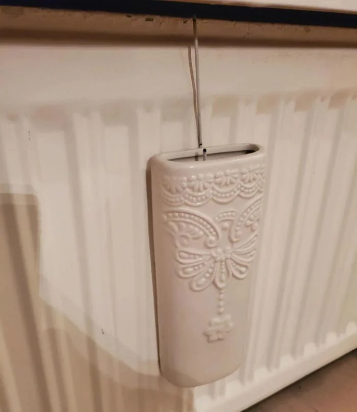 5. Это старый увлажнитель воздуха. Принцип работы простой: вы наливаете воду, включаете радиатор, вода начинает нагреваться и медленно испаряться, делая воздух менее сухим