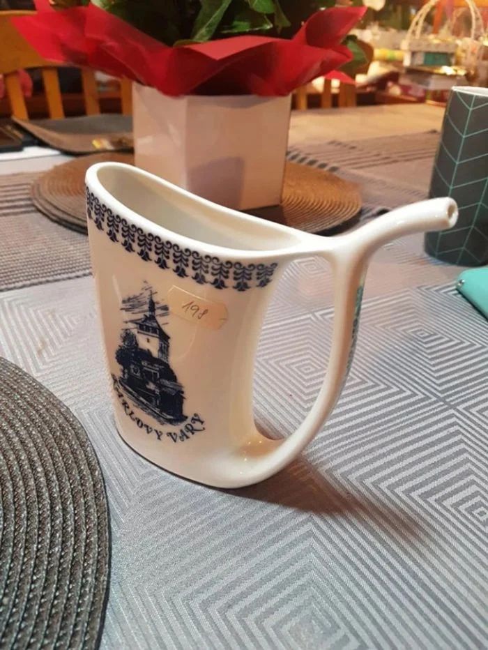 11. Чашка нетипичной формы, она для минеральной воды, которой славятся Карловы Вары