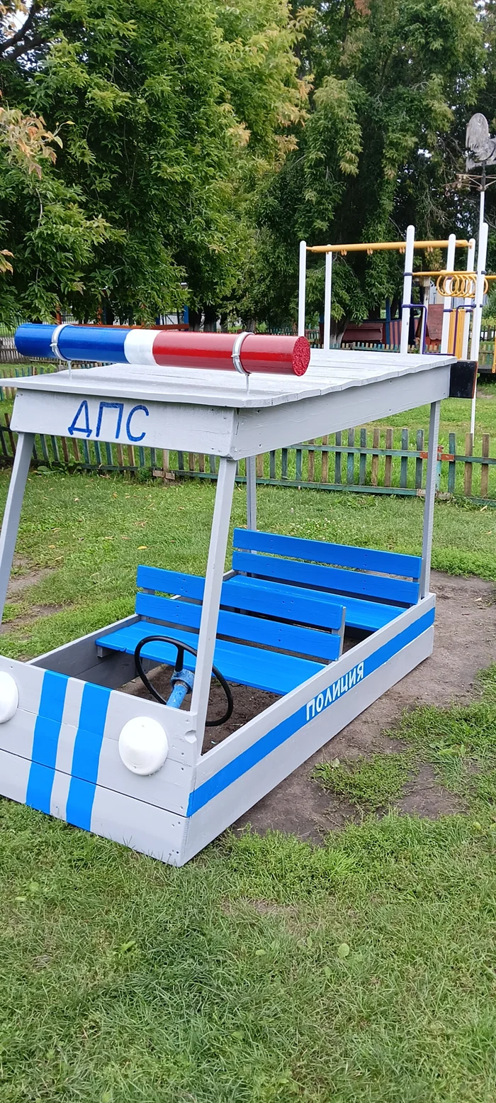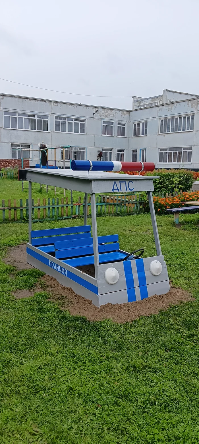 Дочка с сыном ходят в садик. На участке для прогулок был вкопан руль в землю, дети подставляли стульчик и "тарахтя" губешками рулили типа на машине:). Воспитатель попросила меня сделать им лавочку, что бы можно было ездить на воображаемой машине компанией.