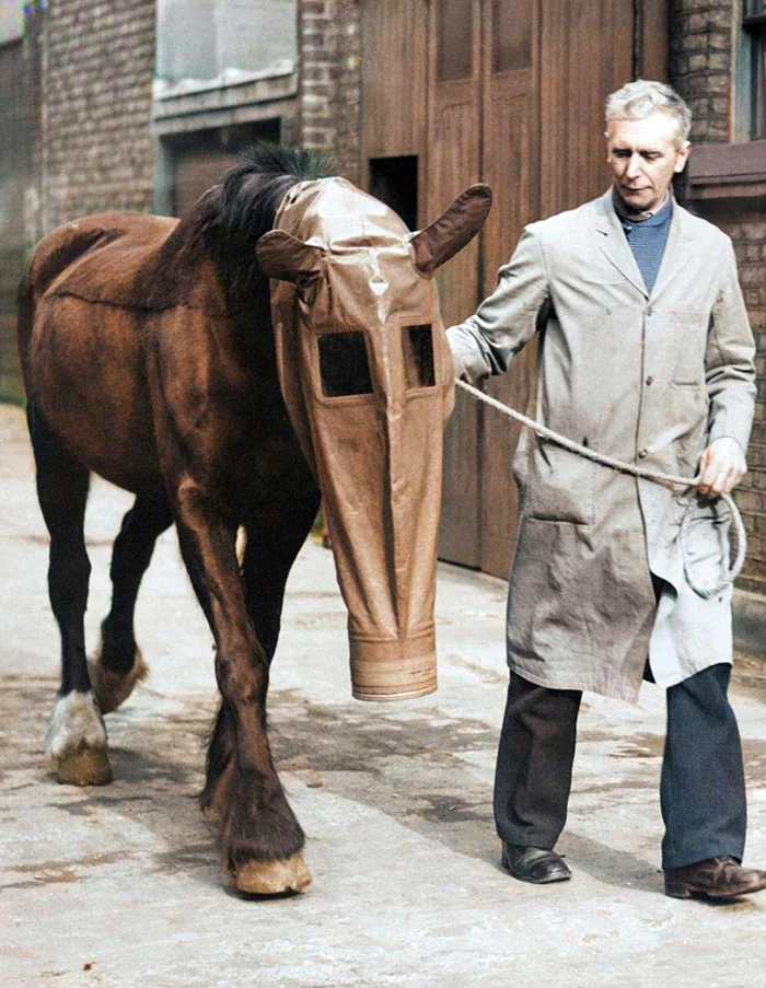 Одно из самых странных устройств времен войны — конские противогазы. Их разработали в 1943 году для защиты лошадей от газовых атак.