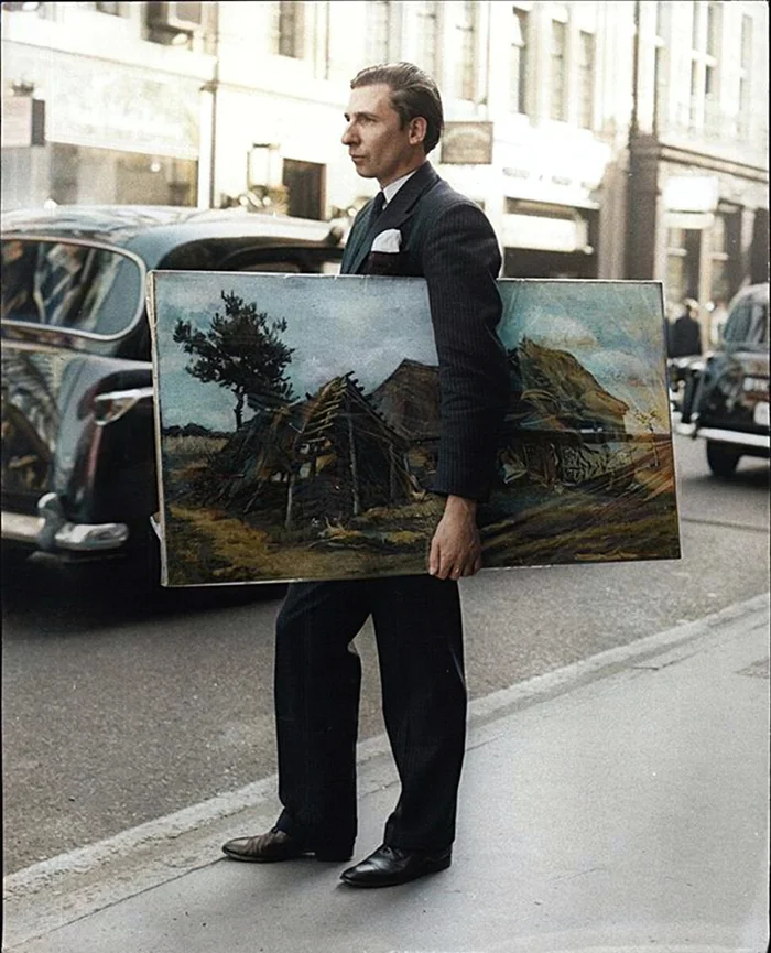 В ожидании такси с картиной Ван Гога в руках. Лондон, 1969 год.