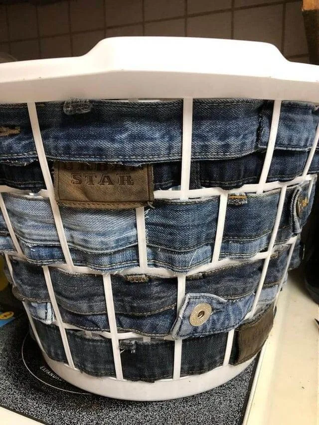 Джинсовая плетёная корзина