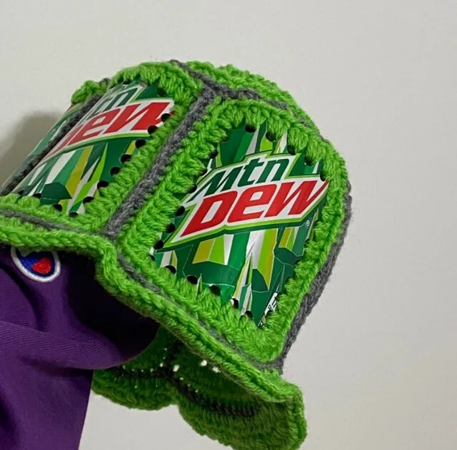 Вязаная крючком панамка из банок Mountain Dew