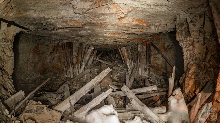 Завершаю нашу подземную экскурсию хочу в необорудованной части рудника, где подземный лес деревянной крепи активно подъедают волны белой плесени.