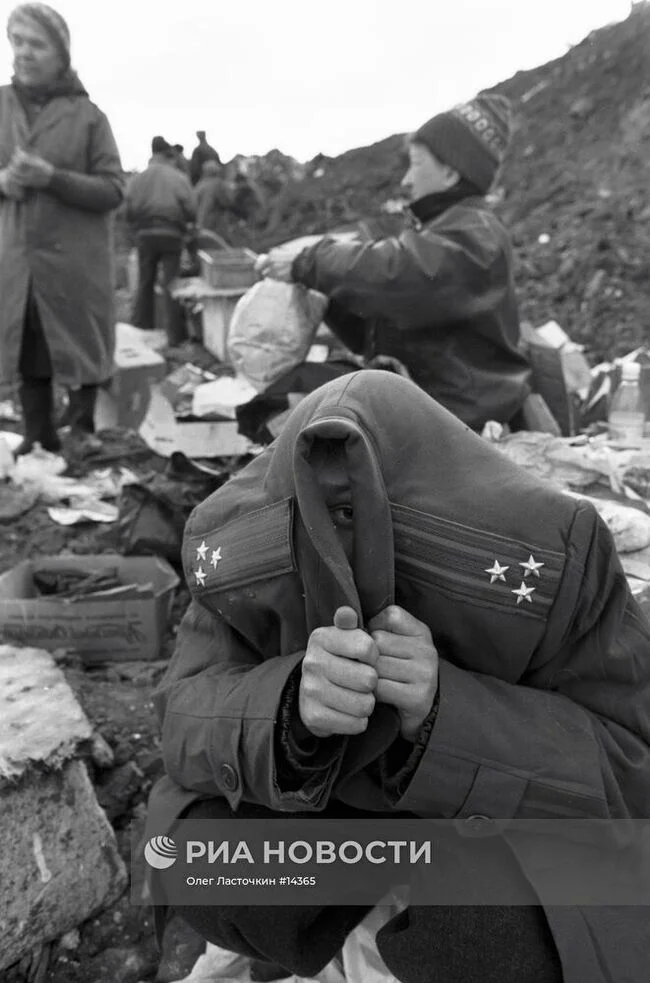 Подросток нашёл на Солярьевской свалке военный плащ, он очень рад, но фотографироваться стесняется.