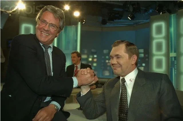 Ален Делон и Александр Лебедь с супругой Инной во время предвыборной кампании на пост губернатора Красноярского края, 1998 год.