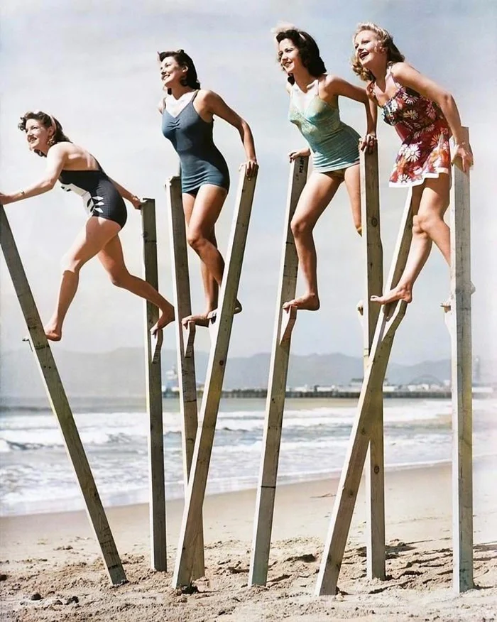 Ходьба на ходулях. Лос-Анджелес, 1942 год.