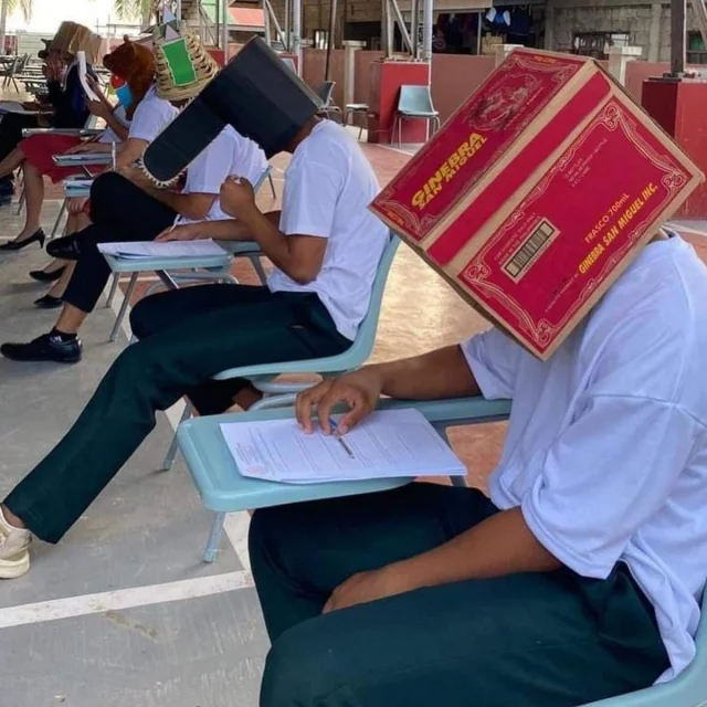 Студенты инженерного колледжа Университета Бикол в филиппинском городе Легаспи начали разрабатывать необычные устройства для головы, которые помогают избежать списывания. Забавно, что эта практика уже стала традицией, распространившись по всему интернету. Эта инициатива была начата преподавательницей и профессором машиностроения Мэри Джой Мандане-Ортис еще в 2022 году. Она потребовала от своих студентов изготовить своими руками шляпы, чтобы те не могли видеть ответы соседей по бокам. Такие креативные решения стали популярными среди студентов, поэтому мы решили собрать наиболее интересные варианты головных уборов, появившиеся за последние два года.
