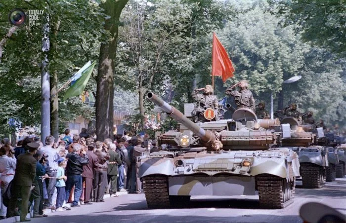 Военнослужащие советской армии охраняют памятник Ленину от сторонников выхода Литвы из состава СССР. Вильнюс. 23 августа 1990 г.