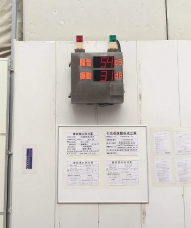 На строительной площадке в Японии показывают уровень шума в децибелах